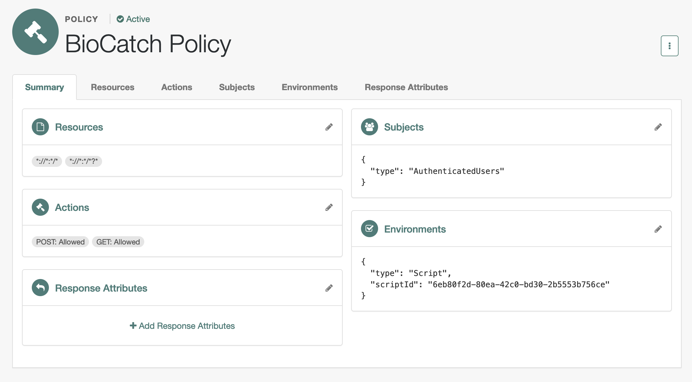Create a policy with the BioCatch policy decision script as an environment condition.
