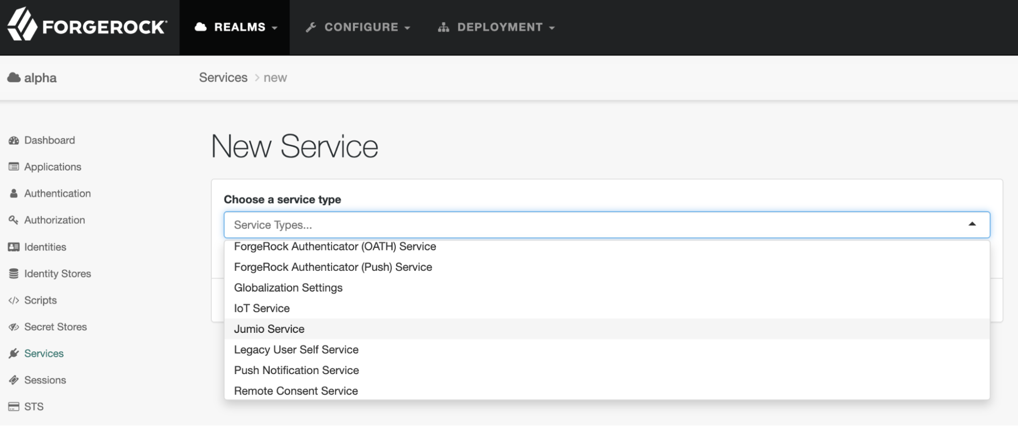 Configure the Jumio service in Advanced Identity Cloud admin UI: