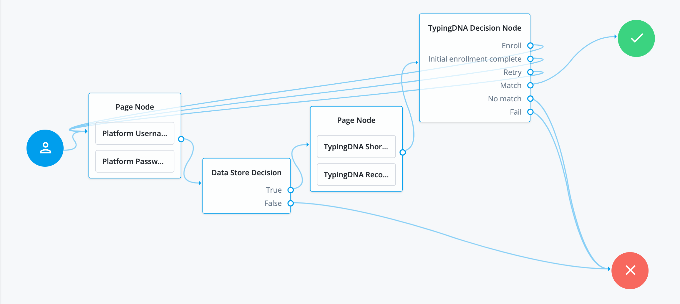 Before using the TypingDNA nodes, you must configure Advanced Identity Cloud integration with TypingDNA as described in Step-by-step: TypingDNA as a 2FA factor in Ping.