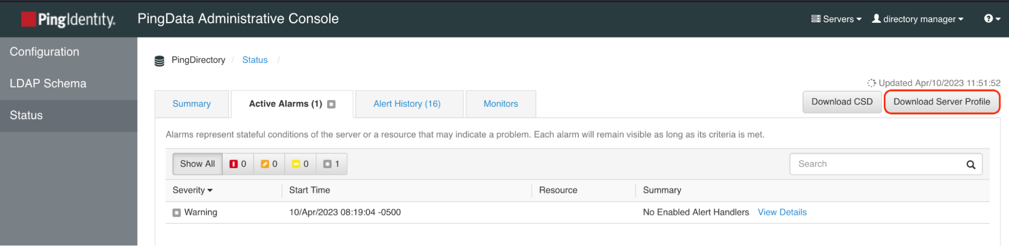 Click Download Server Profile.