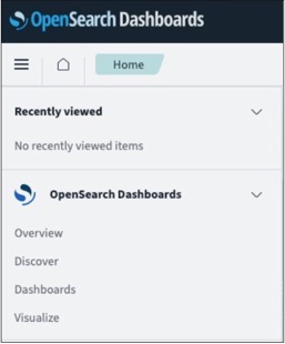 Expand the OpenSearch Dashboards list select the appropriate application: