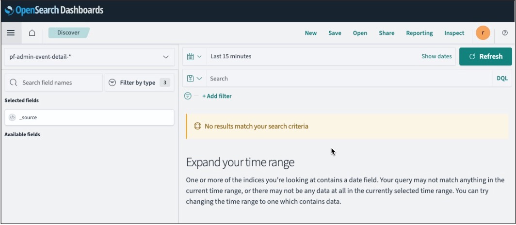 Discover gives you access to data from each Ping Identity product log. You can analyze your data by querying and filtering, viewing results, and drilling down to examine specific documents. You can also create histograms to display your data. Learn more about Discover in Using the Discover application in the OpenSearch documentation.