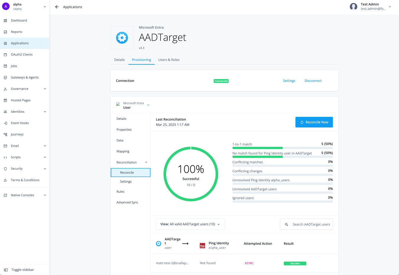 Users — Shows the Advanced Identity Cloud user and the corresponding user entity in the target application.